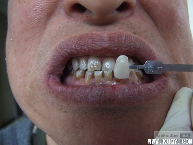 根据3D26色比色板比色,患者牙齿基础颜色与3M1近似。